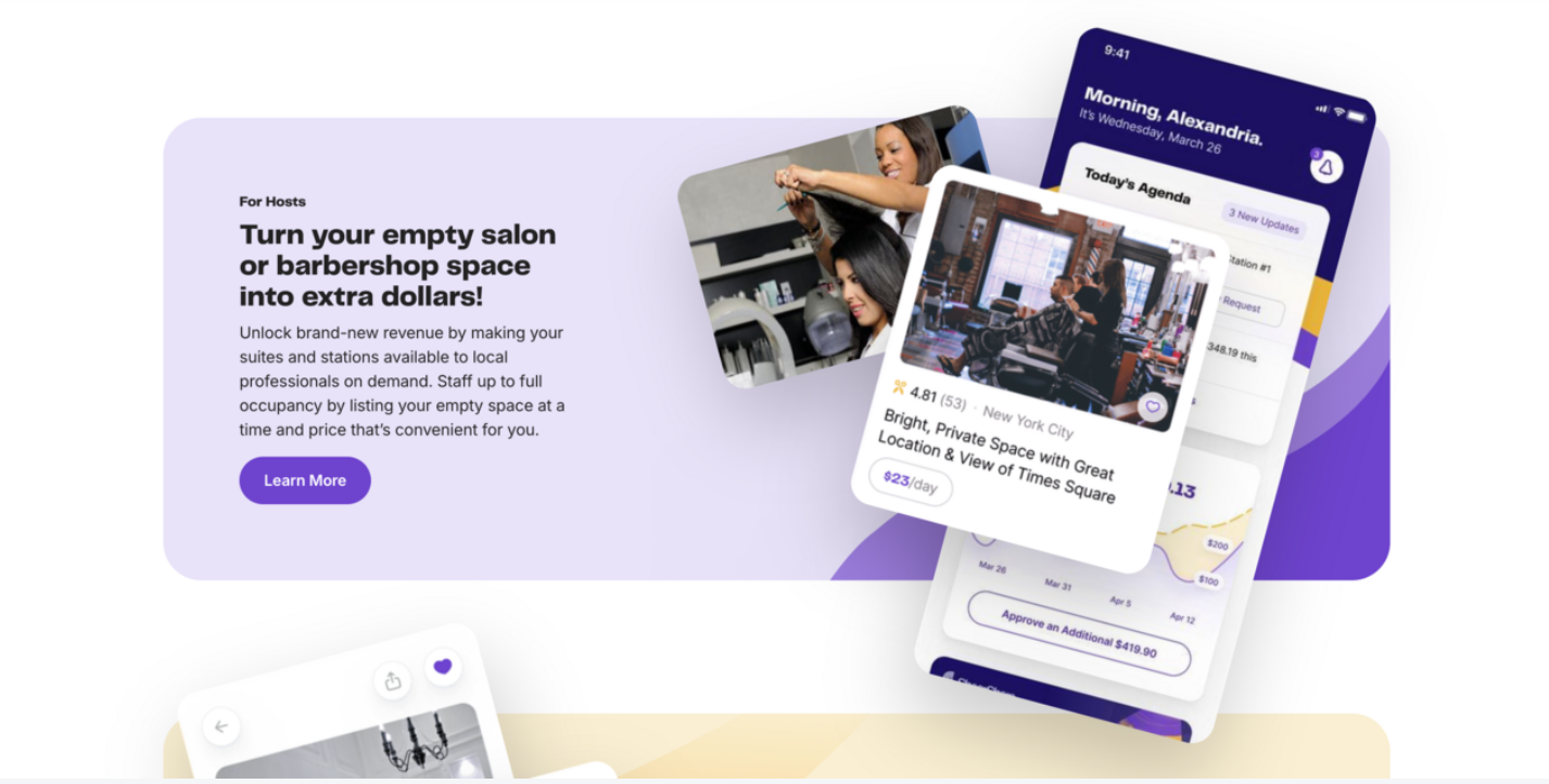 A beauty-tech startup that connects licensed stylists with available salon spaces, like Airbnb for beauty professionals.